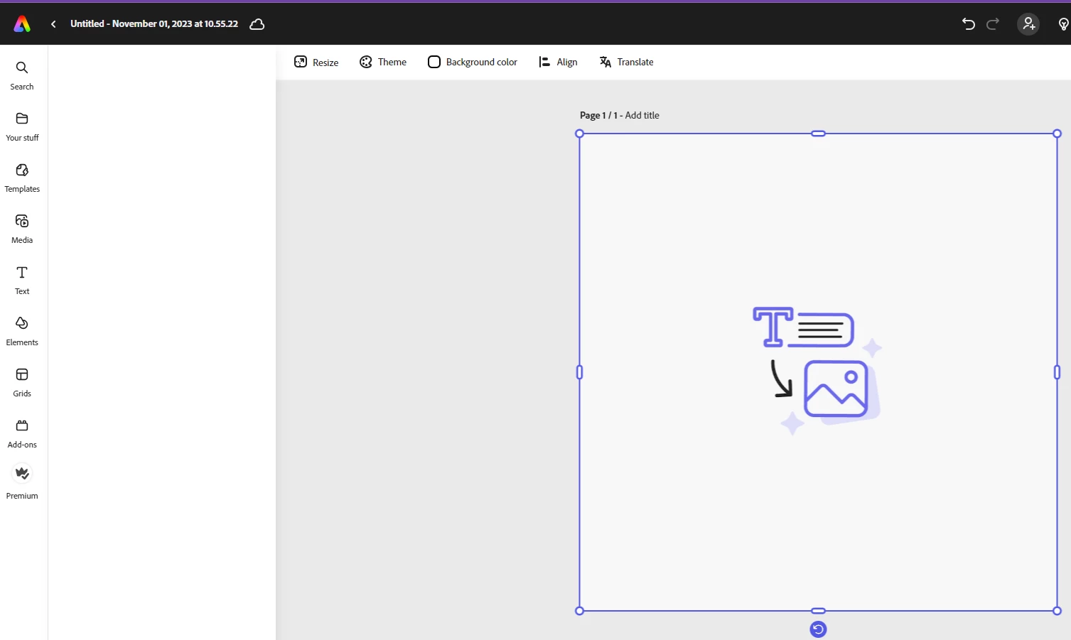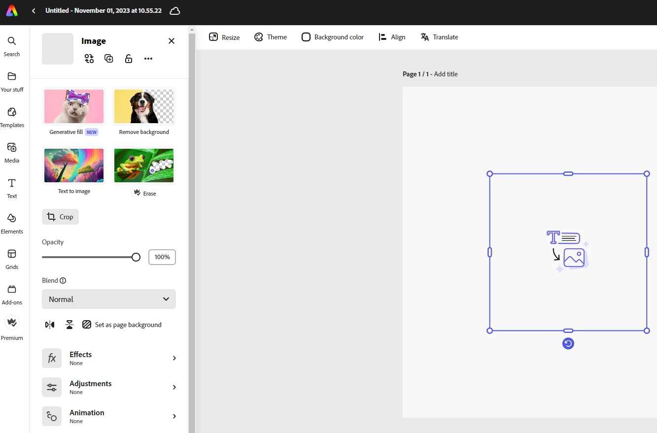 If I click Media > Text To Image, I then select Image Size (1:1), and again, see no Text to Image box.