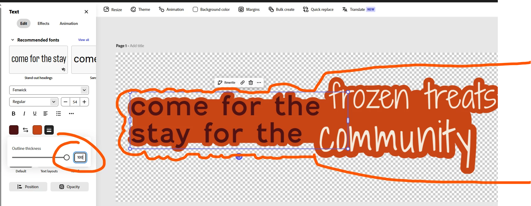 Is there a way to increase the outline of text even further past 100? Or is there a better way to mimic this affect?