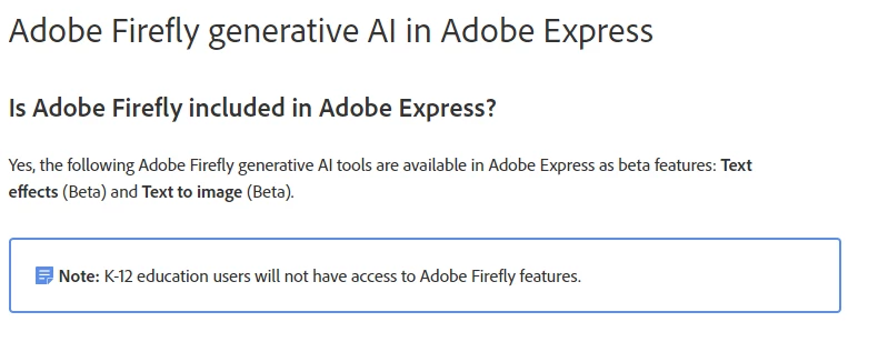 Is the Generative AI tab in Adobe Express blocked for schools? I teach at an International school in Austria that subscribes to CCE All Apps for K-12 and do not have the AI feature in Express. The school IT guy says it must not be included. Is this true?