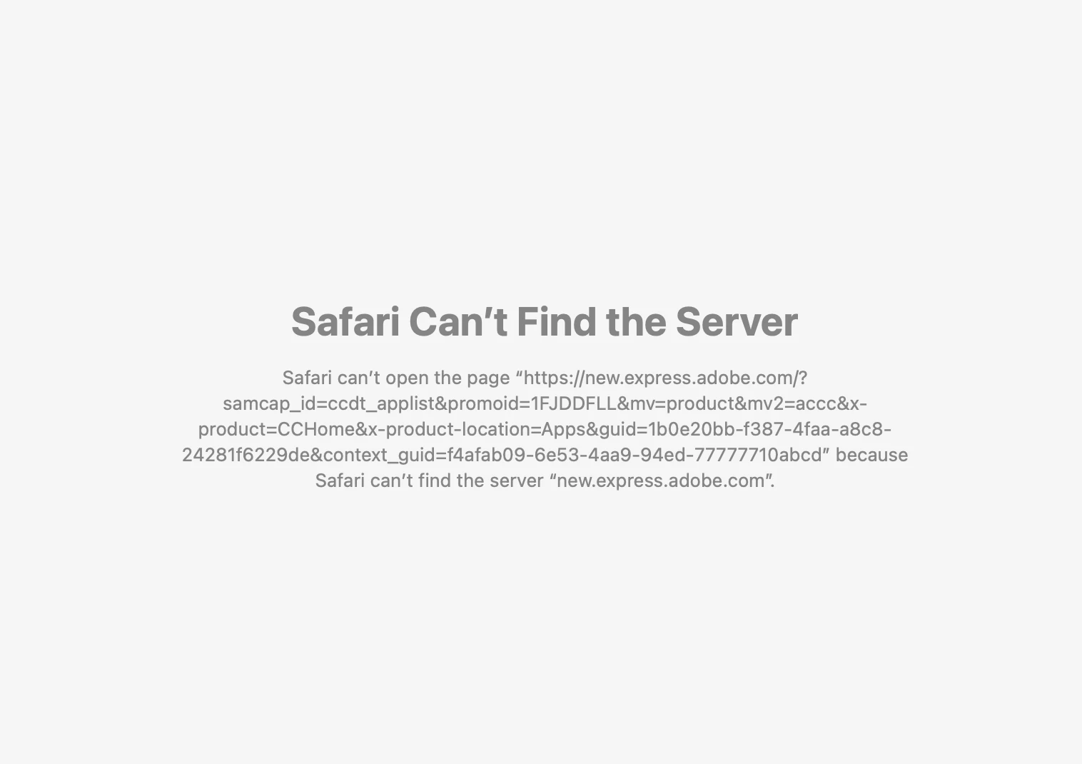 The new adobe express crashed while I was clicking through my projects. When I click through I should be able to access each project, the page went blank and now I keep getting a "Safari Cant Find the Server" message. I've rebooted my Mac which is running on the OS Ventura 13.4.1.