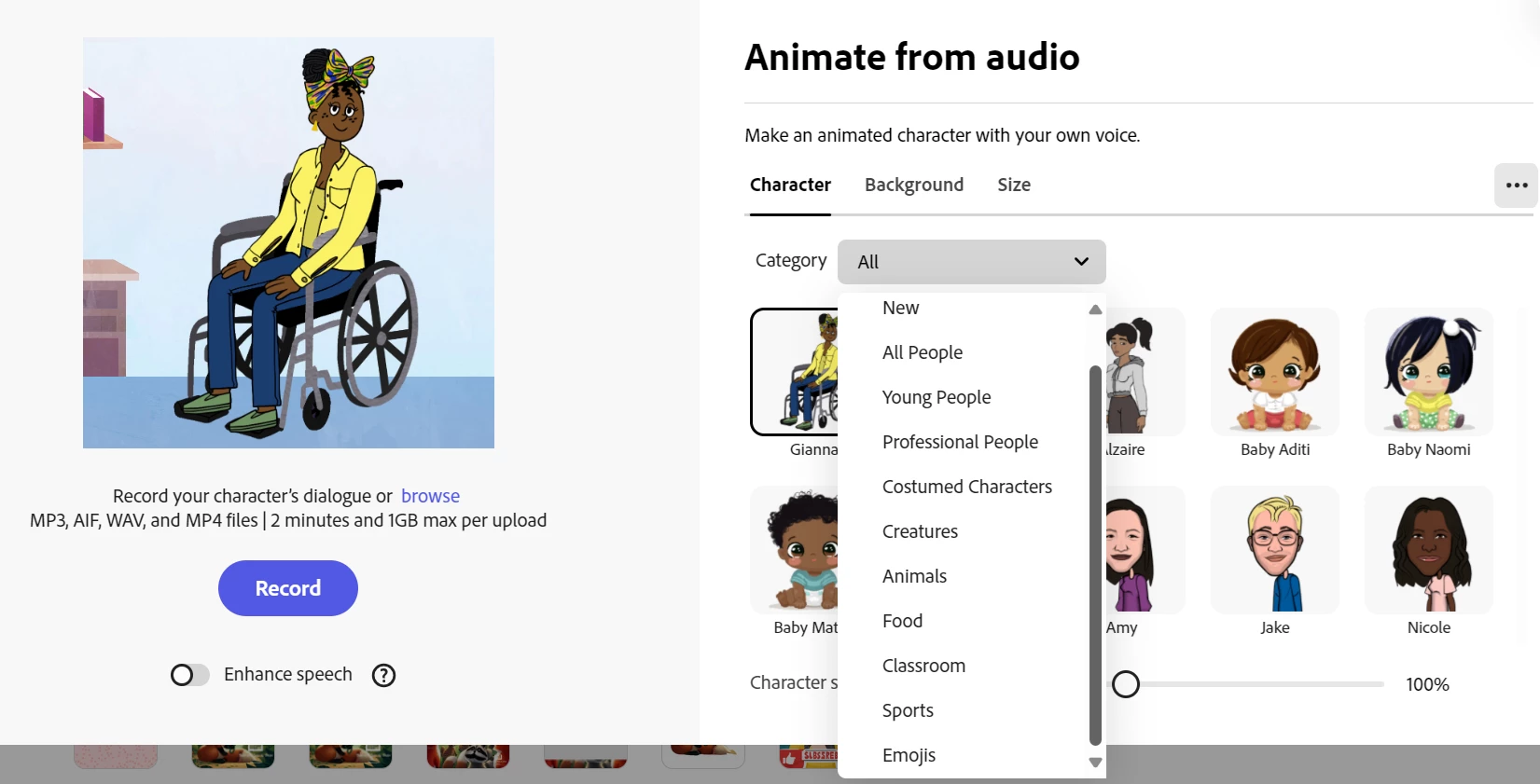 Limited Characters in Animate from Audio- Need for birds, reptiles, Men and Women in traditionaldres