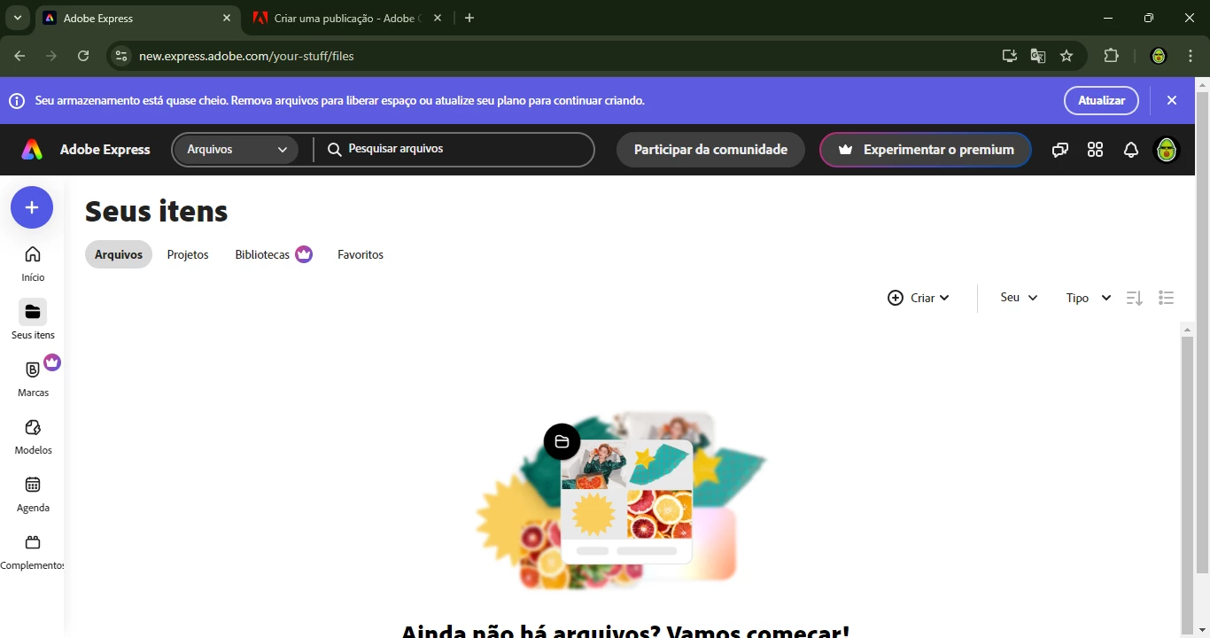 Boa noite, gostaria de saber onde fica a lixeira no Adobe Express? Venho sendo informada de que o armazenamento está cheio, quando clico em "gerenciar", não há arquivos meus, provavelmente devem estar em alguma lixeira do servidor em meu perfil, gostaria de saber onde ficar para que eu possa realizar a limpeza!
