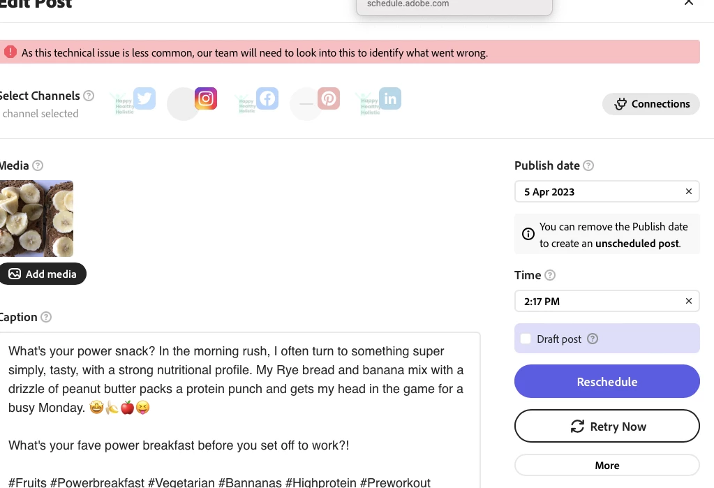 Multiple posts are failing to publish to Facebook and instagram on scheduler