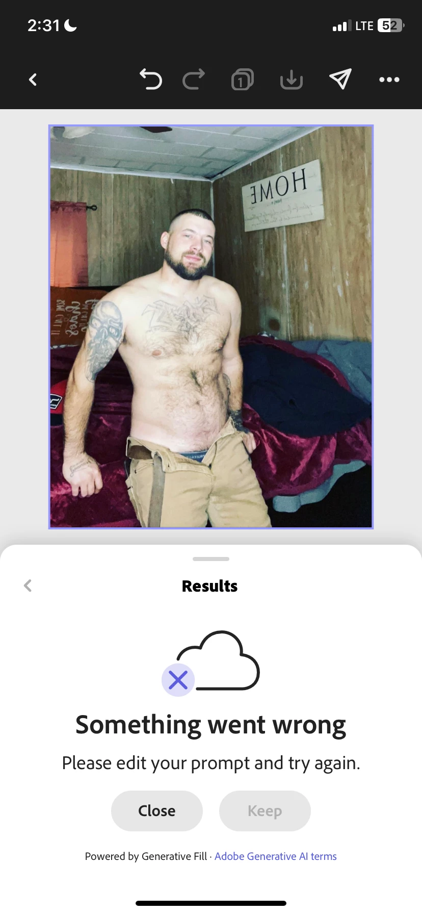 I was originally going to say if you were adding or removing objects from that image in Express, it might be the amount of skin showing that was causing the problem, but I was able to use your photo to remove the sign on the wall. So, what did you have selected at the time and what were you adding or subtracting from the image? A screen recording would help.