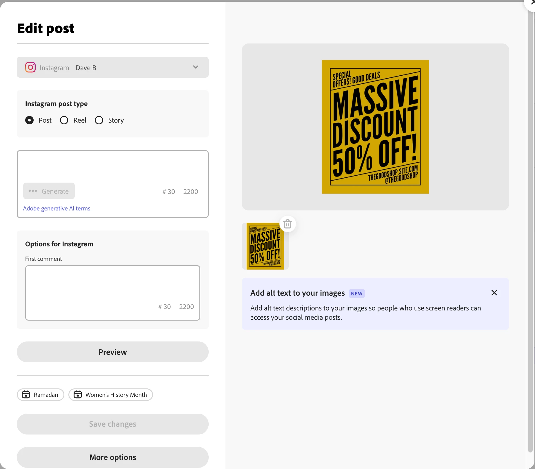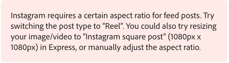 Is there any timeline in place for when Adobe Express will update the scheduling feature to account for the new Instagram Ratio of 1080x1350 Pixels? The scheduling feature is great but now I cannot schedule posts with the correct ratio.