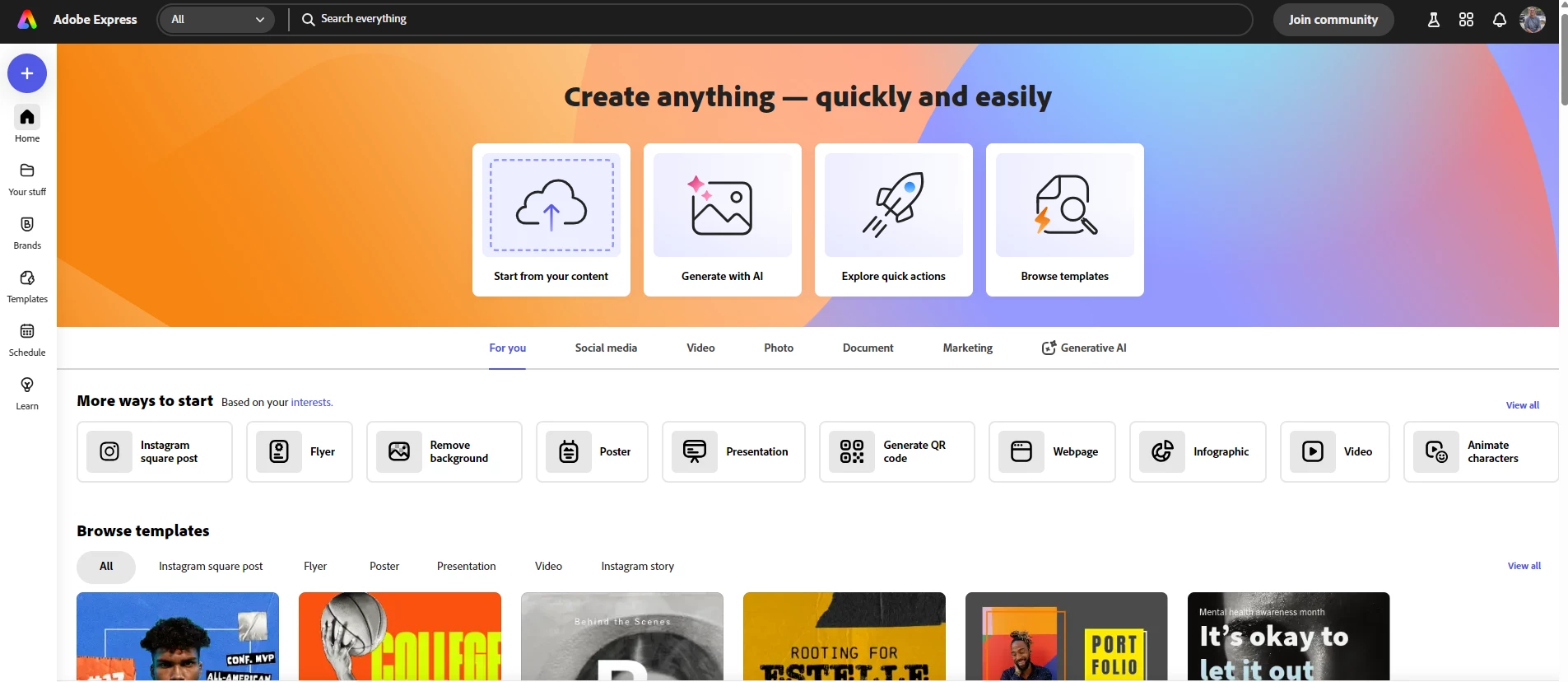 I am hating the new update to the landing page when you first log into Express. I don't want to see 8 million templates, I want it to go back to the different sizes and types of content that you can create. Having access to all the templates is awesome, but it's not the main thing I come to Express for and I find it frustrating that they are being highlighted so aggressively.