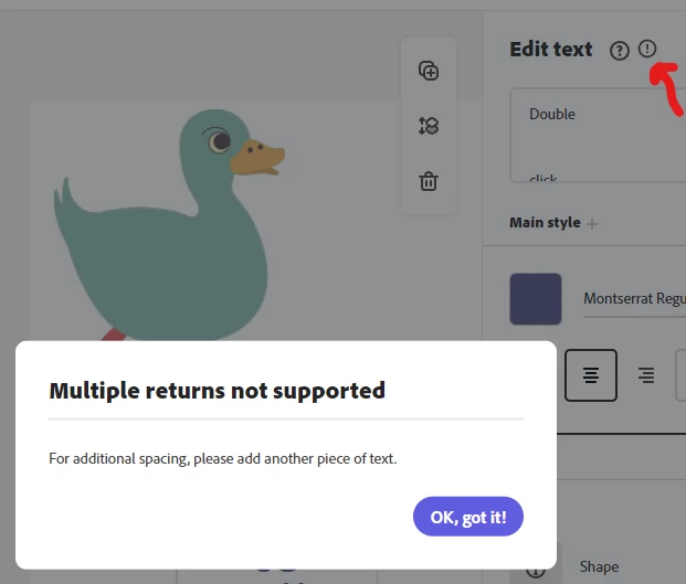 I got a problem in Adobe Express. I just want to separate paragraphs but it's impossible. I'm not sure if I'm to incompetent or if this application is just the opposite of user-friendly. I tried every combination (Shift+space, ctrl+alt+space etc.) but none of them works. Why can't I just press space and then there is SPACE.