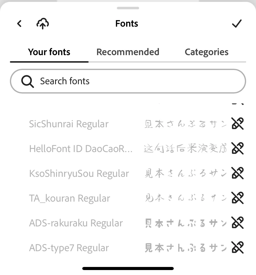 i'm trying to work on a project with fonts that I have added from the creative cloud. Many of them have a pencil with a line through them and I cannot select them. I'm using mobile, and everything should be updated to the latest edition. Any suggestions?