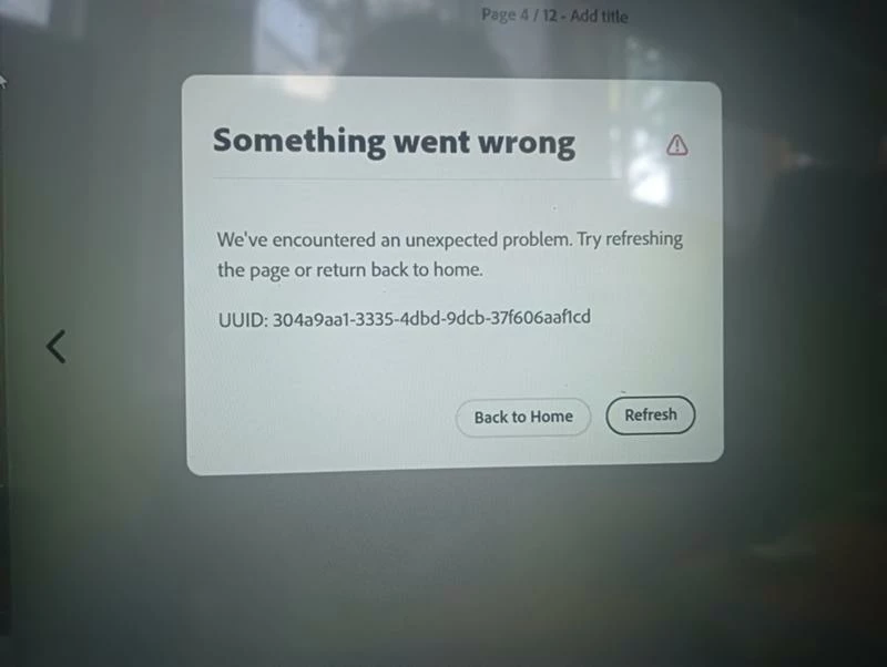At the wrong time, an error has come out in the Adobe Express application that does not allow you to continue working with the project. I tried to launch a window in the Browser, but even there it gets out, restarting did not help. Tell me what is the problem and how to solve it