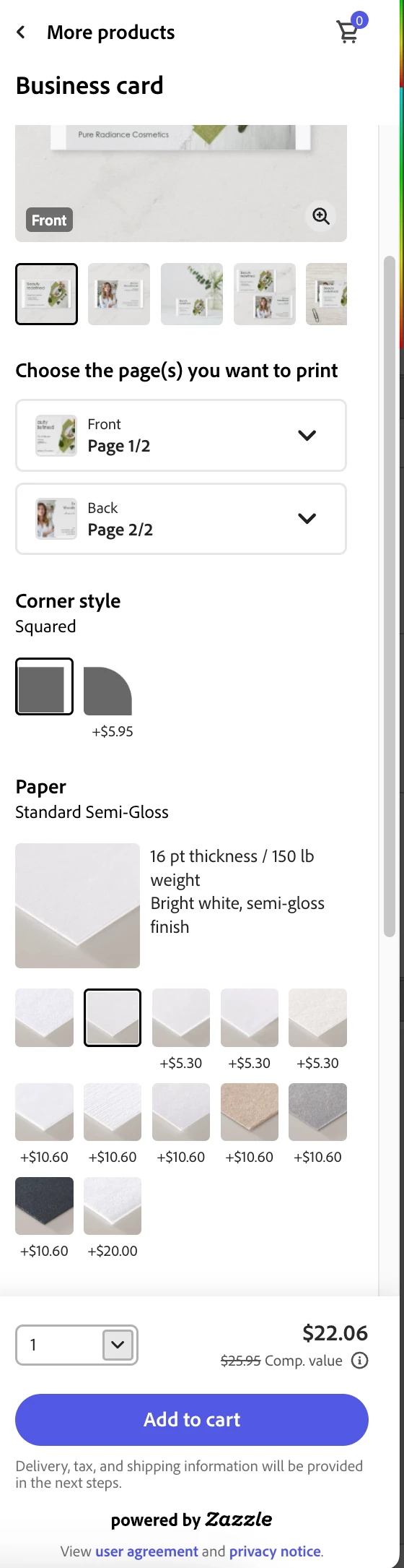 Does the pricing for a business card in vector format cost more based on the texture? As well as well as size shape and front.
