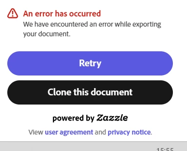 Hey @haroon_9301, thanks for sharing access to the project. I tried to download it as a PDF and a PNG, and it worked fine for me. We are investigating the print-on-demand (Zazzle) feature, which will require some time. We'll let you know once we have an update on it. Also, can you switch to a different internet connection until then to see if that makes any difference? Being on a VPN or work network (restricted) can also cause this issue.