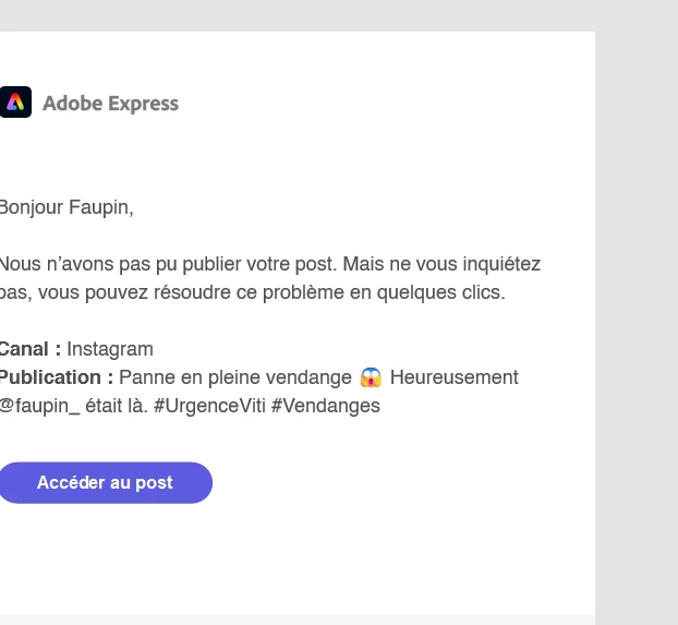 Depuis deux à trois jours, je rencontre un problème avec le planificateur Adobe Express.