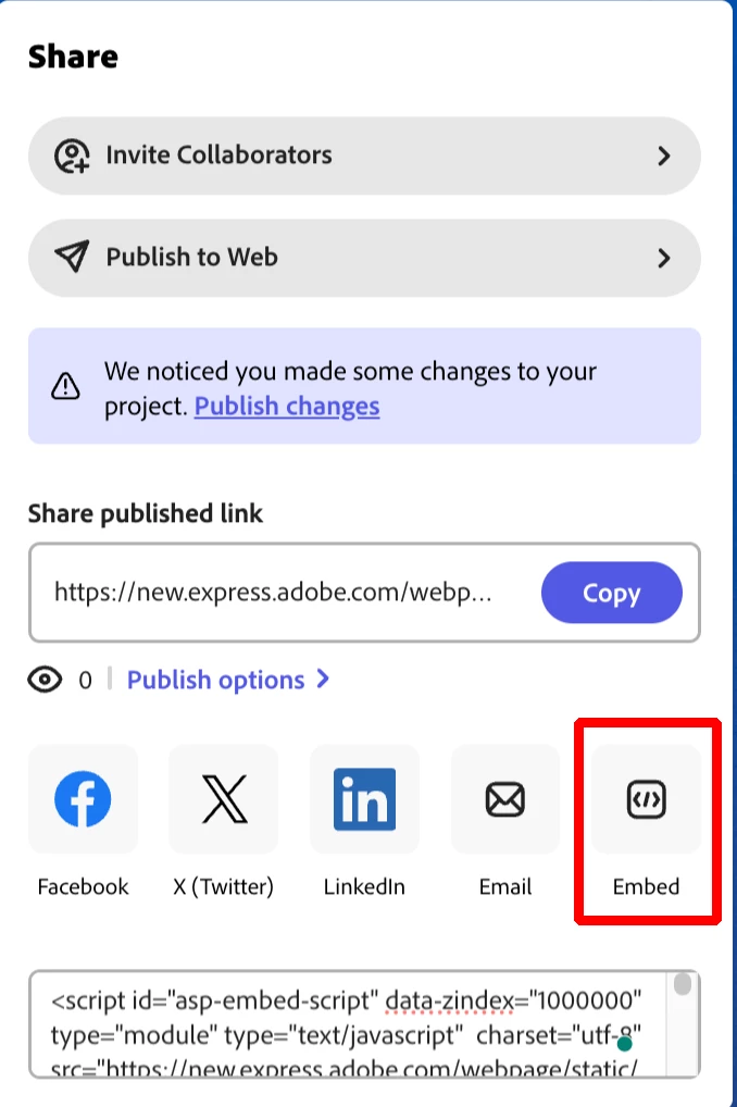 He diseñado, con Adobe Express, una pagina web para mi nuevo emprendimiento. La puedo publicar en mi dominio propio? Existe una manera?