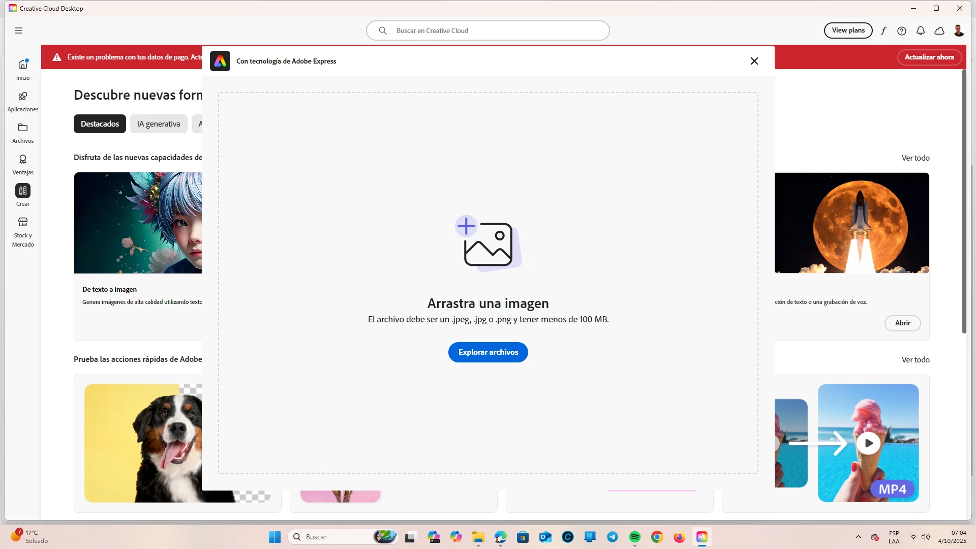 Quitar color a elección en vez de fondo Creative Cloud Express