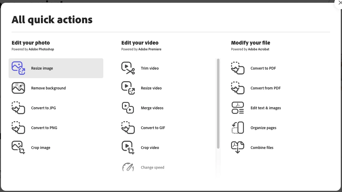 If you resized your images to 1280x720 for widescreen or 720x720 for square (depending on which project preset you chose) they should match the frame size for video. There is also a quick action for resizing images which you could select custom and type in the dimensions.