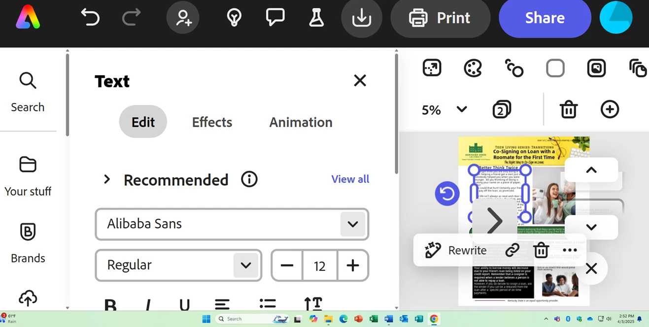 I can't figure out how to make the screen smaller so that I can finish my project.