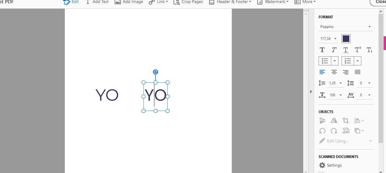 Adobe Acrobat (the first YO behaves like an image, the second YO I can click and edit the text)