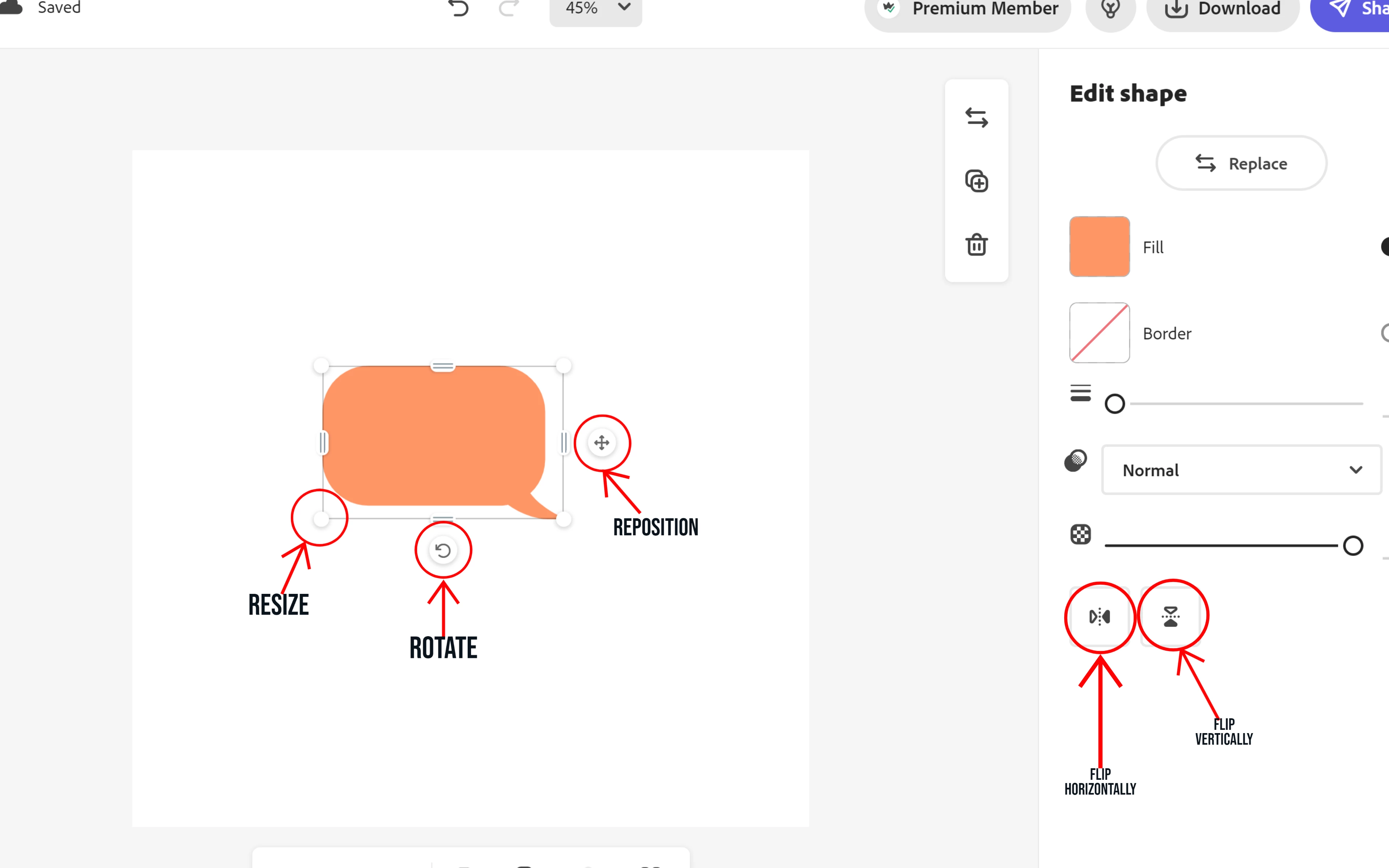 I know I can create a speech bubble in Adobe Express, but is there a way I can also resize and move the bubble's tail independent of moving the bubble?