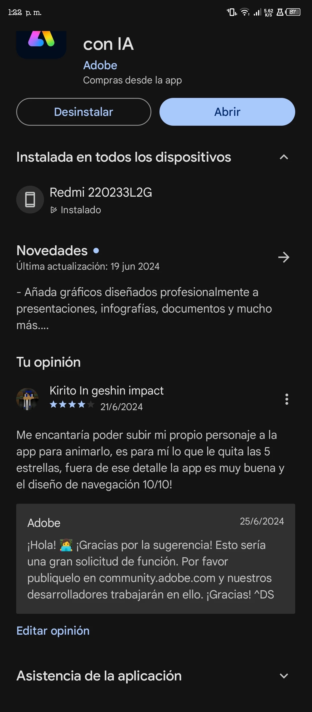 SSamuysu38254045uqs0ParticipantForum|Forum|1 year agoJune 25, 2024QuestionSugerencia de usuarioForum|Forum|1 year agoJune 25, 20240 replies65 viewsMe encantaría poder subir mi propio personaje a la app para animarlo, es para mí lo que le quita las 5 estrellas, fuera de ese detalle la app es muy buena y el diseño de navegación 10/10!Generative AI