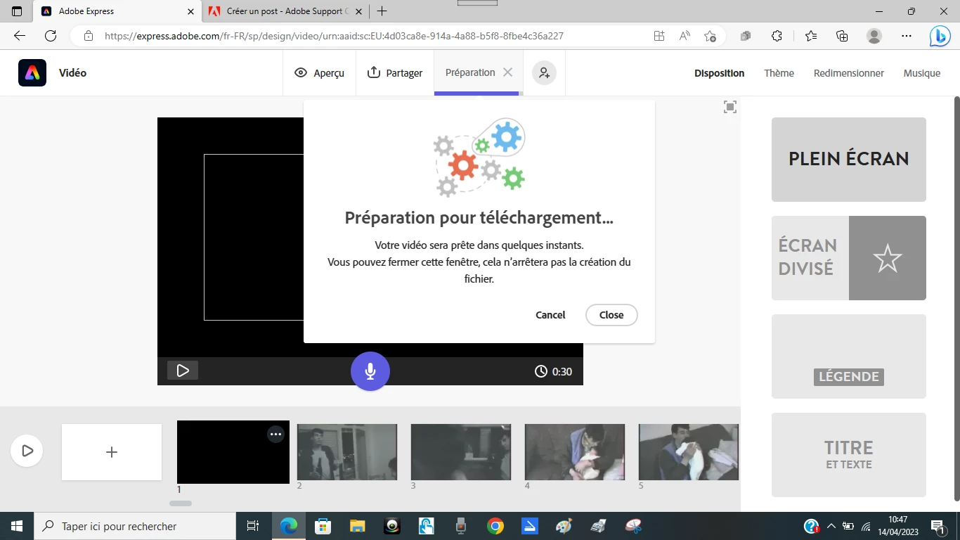 J'ai fait plusieurs vidéo courtes accolées que j'ai voulu télécharger dans un même fichier... au final le téléchargement débute mais ne s'arrête jamais, pourquoi et comment y remédier SVP