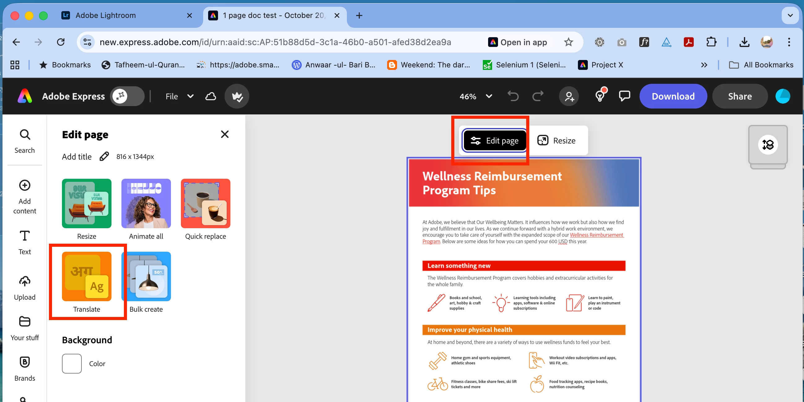 Good day everyone, I used adobe express several times for the translation of pdf files. Mainly from Dutch to French or English or others. But now the translate button is no longer there. I also don't see the header bar with the options I used to have.