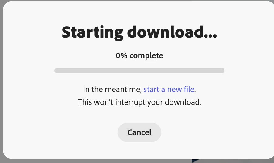 I need to download my video. The pop ups loads but the progress bar is not moving. I have download file in the past and I try logging out and clearing my cache.
