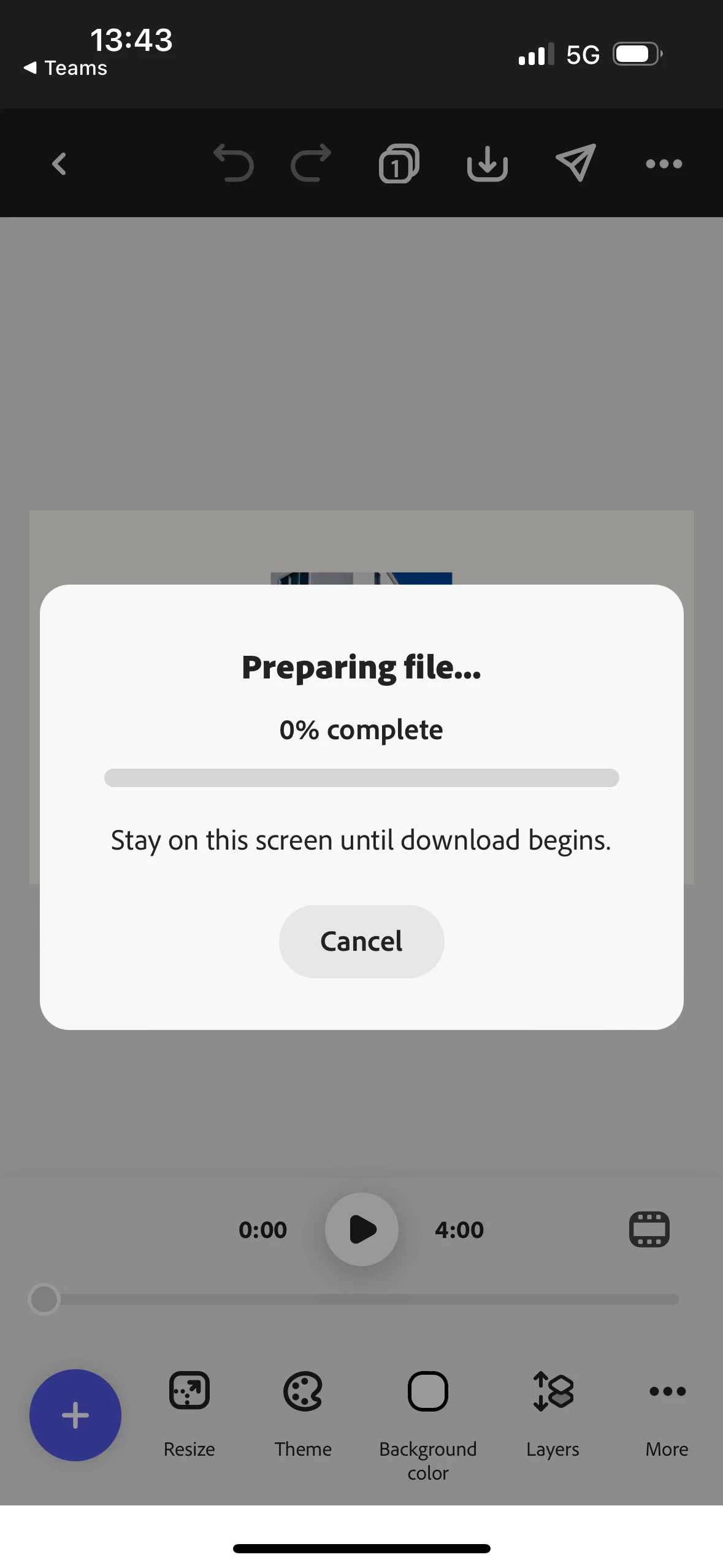 Estou trabalhando num projeto de vídeo e de repente não consigo mais fazer o download, a aba de carregamento fica estacionada em 0%