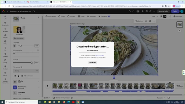Der Download des fertigen Videos startet auch nach mehrmaligem Versuch nicht.