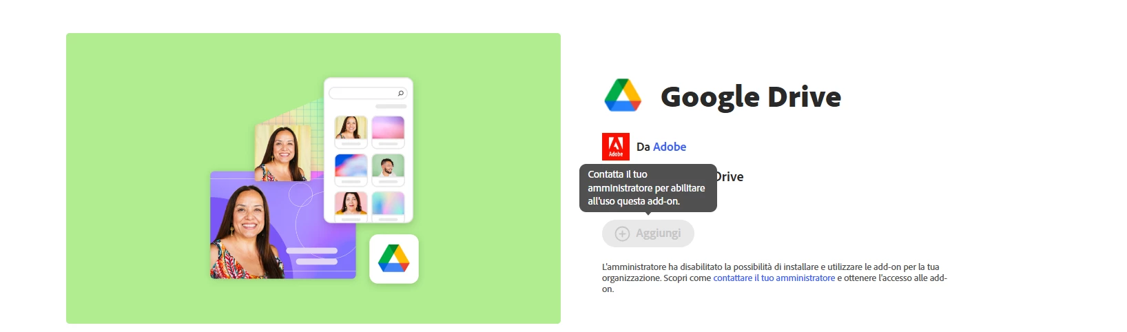 I’m, trying to enable the google drive add-on, but as soon as I try to add it via the button on the google drive page it says “contact your administrator to enable this add-on”. But I tried it logging with the admin account and it says the same thing. I tried to look on some settings to make it work but I don’t find any way to enable it.
