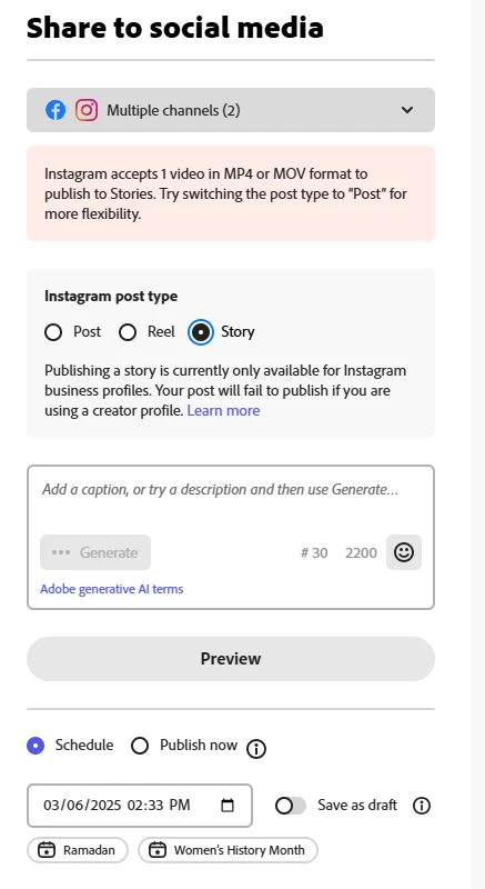 Is your story a video or static images? If it is static images this could be the cause. We currently only support video but I believe support for static is planned https://adobe.ly/4bxy9jW Please add your vote and comments to the page to show support for getting it added.