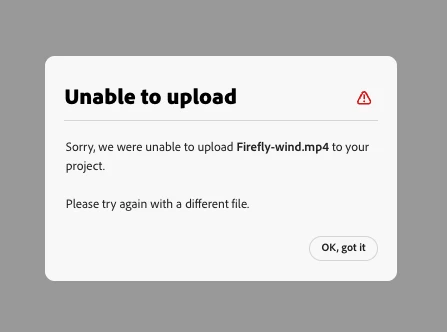 1) This has happened a few times. I create an image in Firefly Vid and then attempt to upload the file into Express: 1:1 post for Instagram.