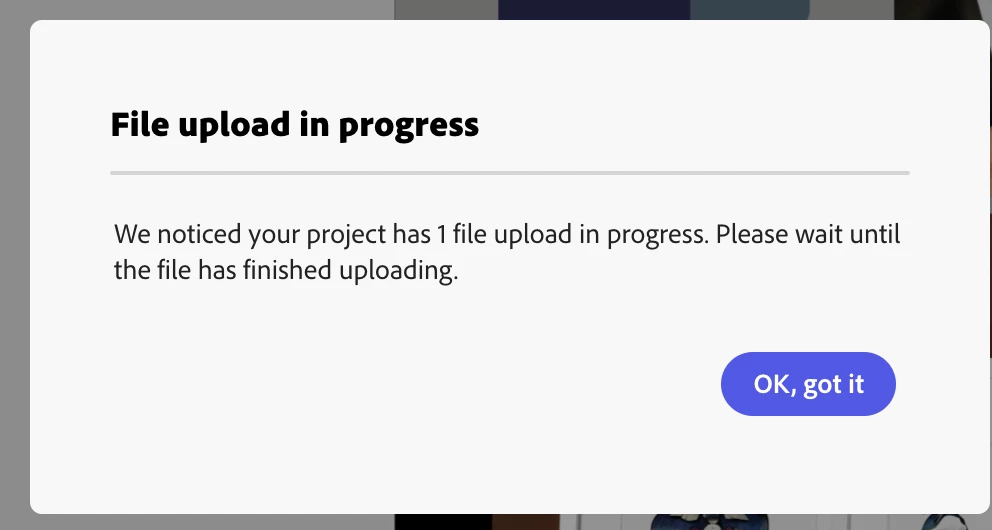 I keep trying to download the work that I have done on my projects, and I keep getting this error. I have cancelled ALL of my scheduled posts, all of my videos are loaded, edited, etc. I let this "run" overnight, and it's been throwing this error for over 12 hours now on all of my projects. Where can I find what is uploading and blocking my progress? A history or a timeline of sorts?