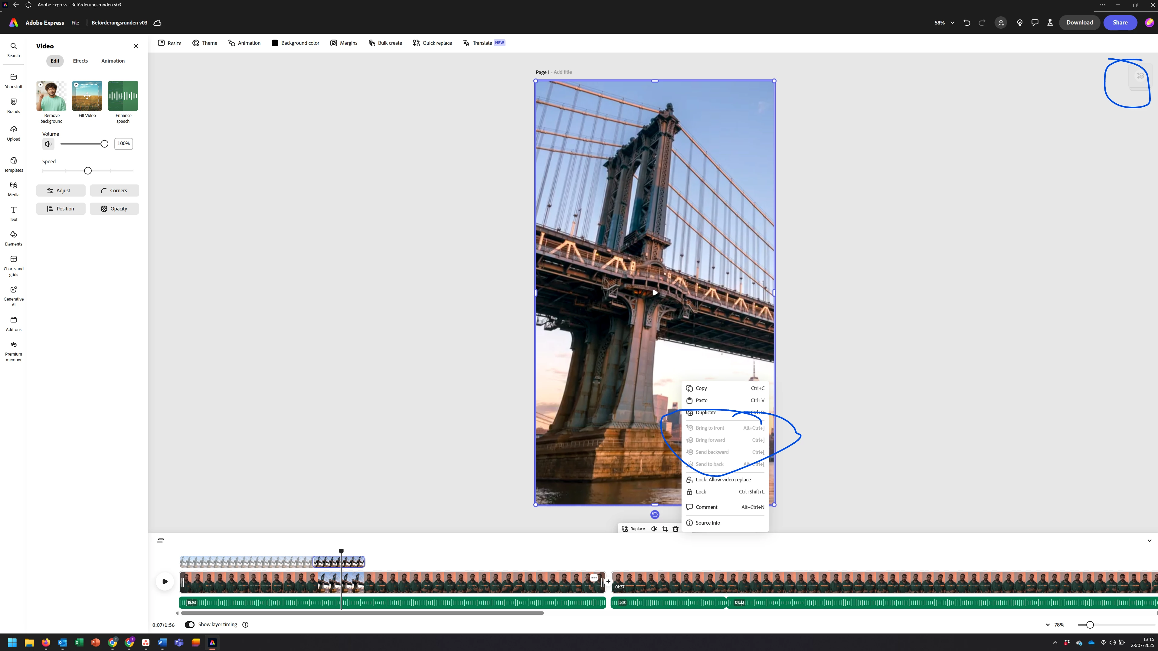 Video editing: Bring to front/back not possible with included captions