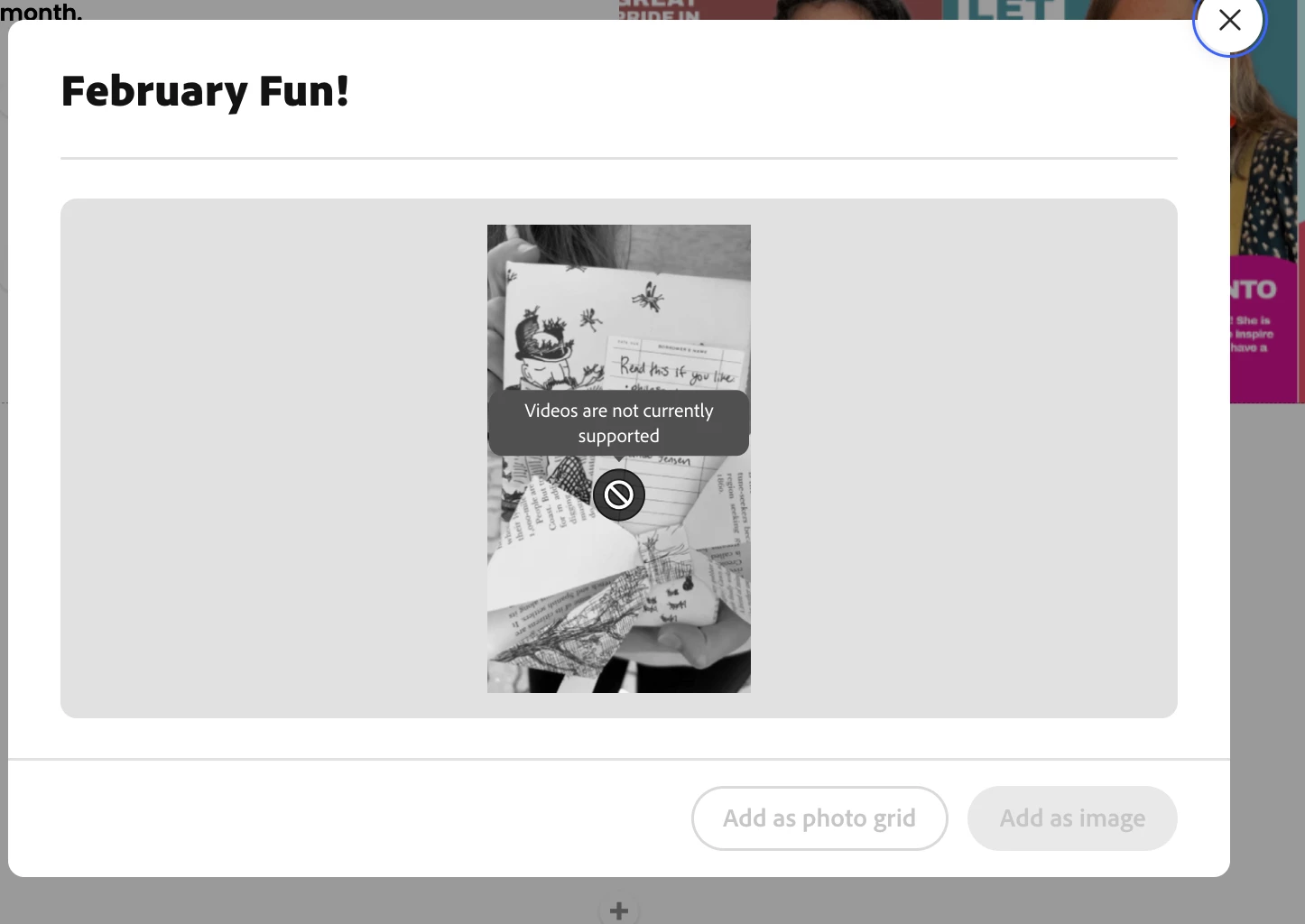 Trying to include videos in my webpage turned newsletter, but I keep getting this. This is a video from “My Stuff.” Is this just a hiccup?