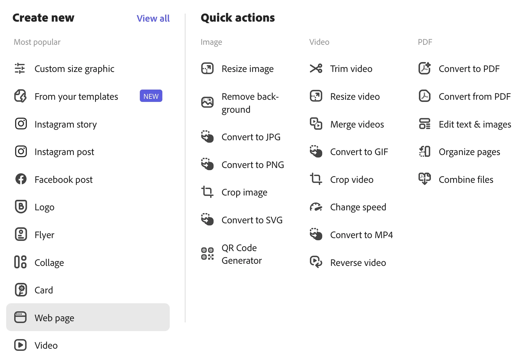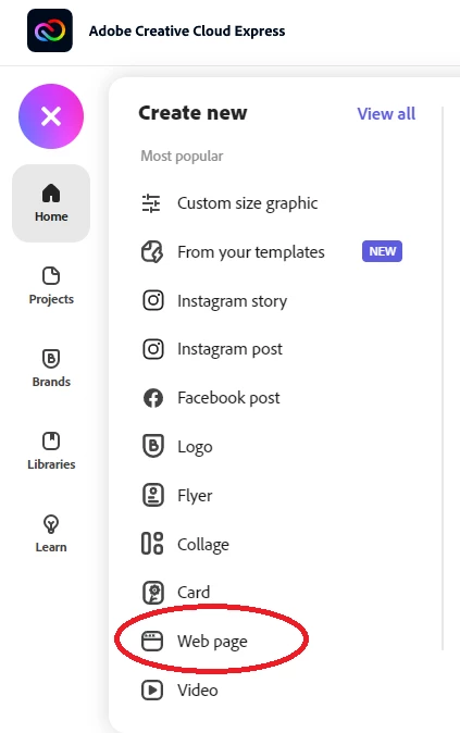 Was there ever an answer for this?? "Web page" is not an option on any Adobe express creations. AND THIS DOES NOT FUNCTION LIKE SPARK PAGES.