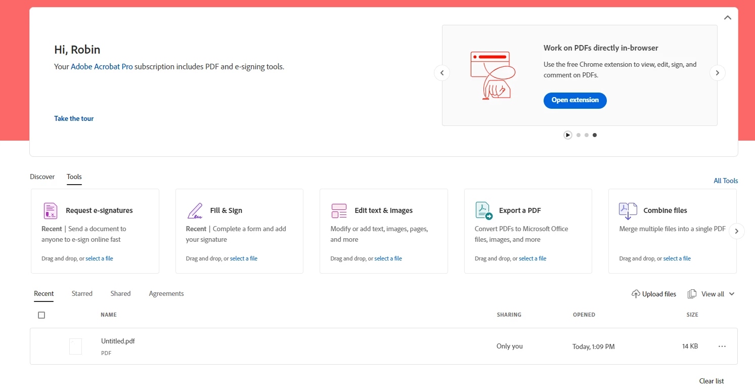 I have the option of using the “request e-signature” tool in Acrobat Web (acrobat.adobe.com) (this does not appear in Acrobat Pro on the desktop.