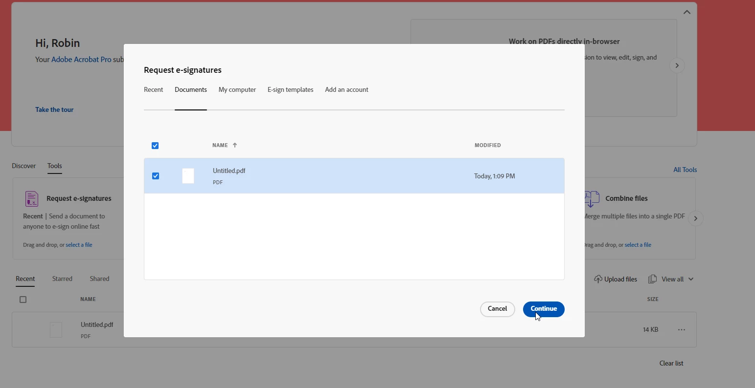 Acrobat Weg "Resques e-signatures" stuck in loading screen