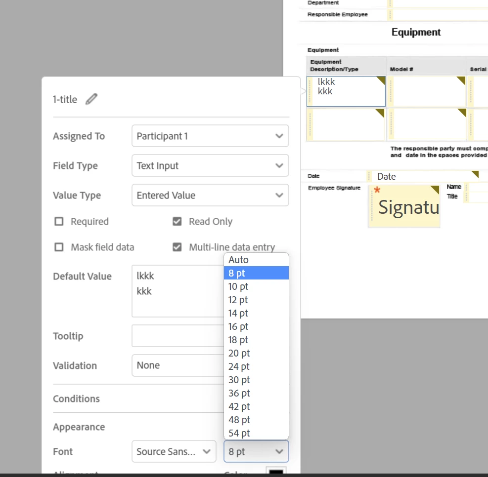 Adding smaller font size options for agreement template text fields