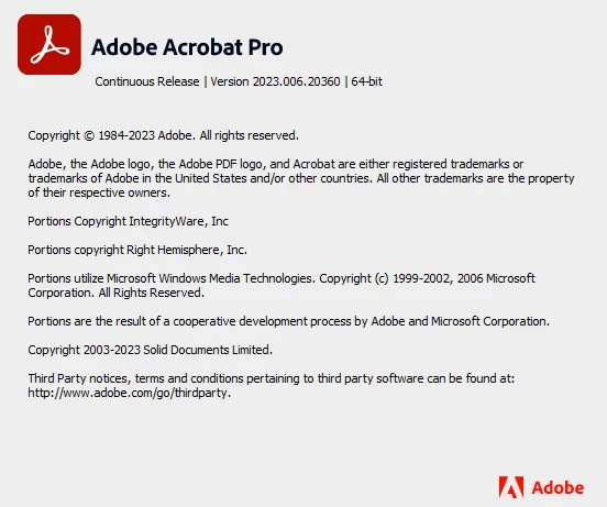Here is a screenshot of the About window for version information.