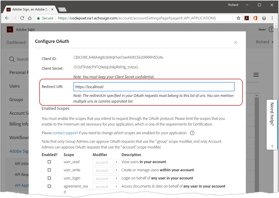 Adobe sign Access Token Issue
