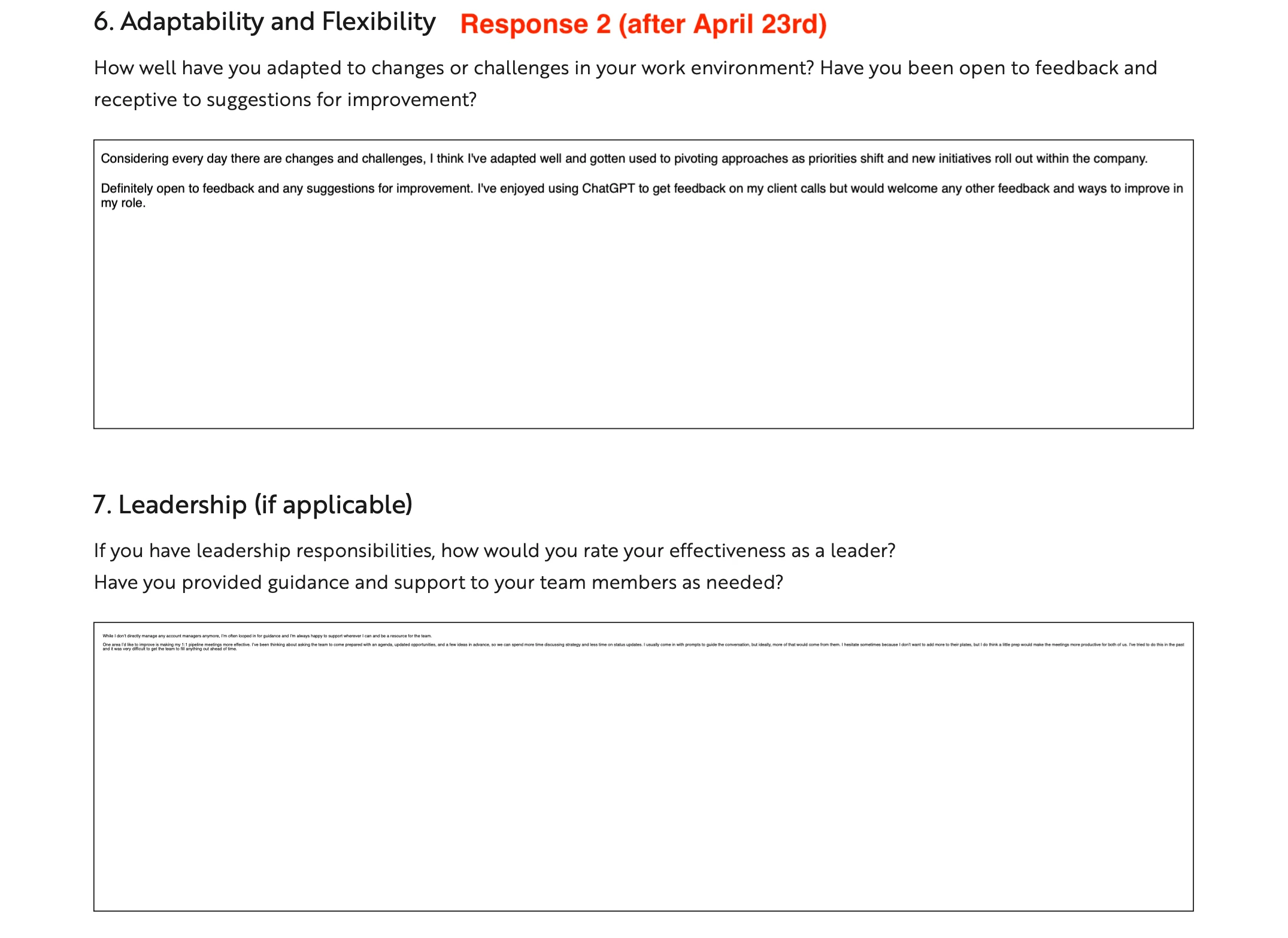On April 22nd, I recieved some responses back and the format looked completely fine. However, this is where the issue started...after April 23rd I received more responses, but the text fields were all different sizes and ever since the 23rd, all my other surveys came back with this same issue with the text field. Some responses were kind of normal text size if they didn't type a lot, but other longer responses were extremely tiny and almost impossible to read without zooming in at 200%.