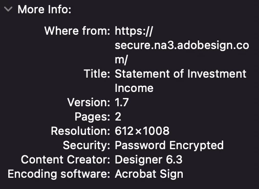 I want to retrieve template documents using Adobe Rest APIs in my Ruby on Rails Application. I am able to retrieve the documents but I am unable to fill the pdf with its field forms. After retrieving the documents I found that there is an encryption for these documents(1st image: template document encryption info, 2nd image: before uploading to adobe templates).