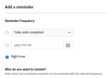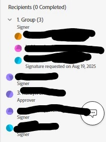 I am having a bizarre problem with sending out an agreement for signing using Adobe Sign. I usually send agreements to 2 x signatories, I then approve, and it goes the the next 2 x signatories. In this instances for some reason the 1st signatory has not received a request to sign. I can see in my "In progress" dashboard that MY NAME is listed in the "Recipients" section where usually the first recipients name that has to sign first usually is quoted. It makes it seem like there is something that I have to action before it will be sent to the signatories. I have tried "sending reminders" however the first signatories name does not come up in the "active parties" to receive a "right now" reminder....it says those reminders can only be sent to active or completed recipients but the only recipients that show up that I can send that reminder to are the people CC'd on the agreement. I am very confused and have tried "mofiying" the agreement to no avail. I have also tried adding "alternate recipients" to the first signatories email address in case that would work but it hasnt. f I have to cancel and redo this agreement it ruins the time stamp audit trail of when the agreement was sent (as for this particular agreement, it needs to have 14 days between being sent and completed). Please help me desperately to resolve this issue that I have tried and tried and tried to problem solve!
