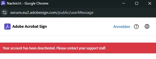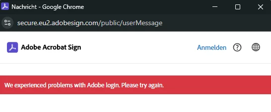 Adobesign: unable to sign due to failed login