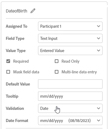 Field 1 text tag: {{*eaDateOfBirth_es_:signer1:isdate(format=dd/mm/yyyy)}}