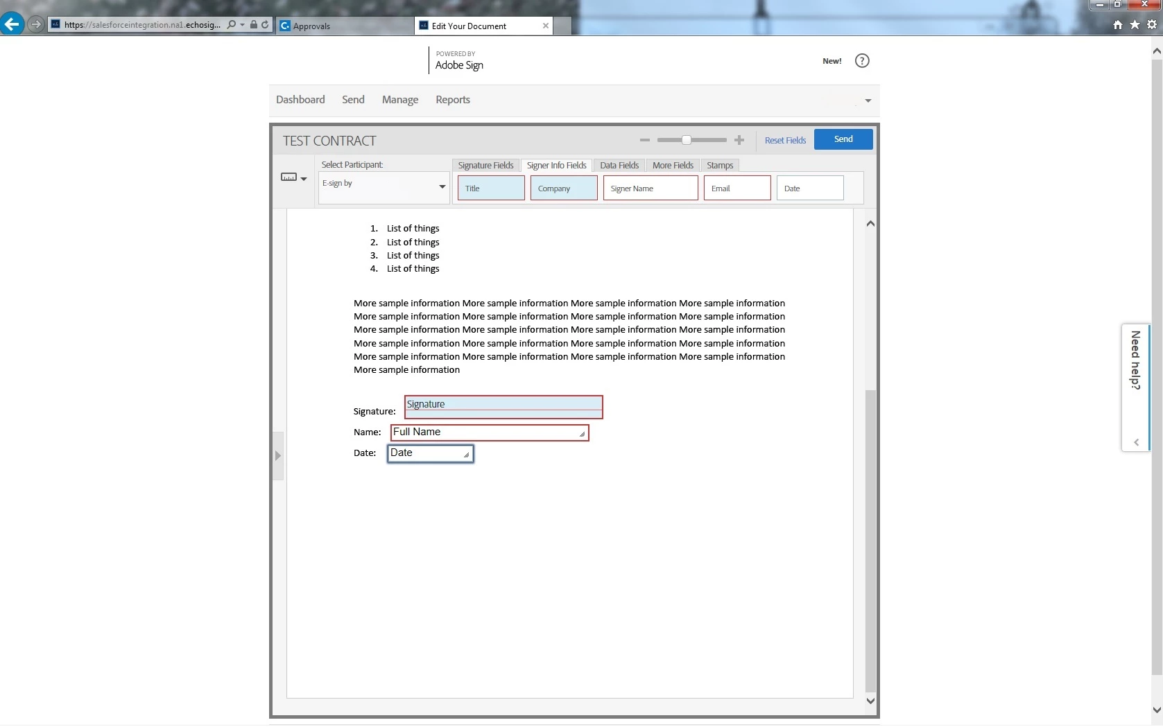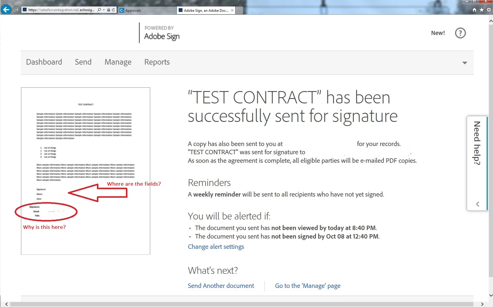 3. Regarding the fields not appearing in the thumbnail issue, i am not sure if it ever appeared on the post send page. The fields do appear on the Manage page if you look for the PDF's under your Signed agreements, but not for unsigned documents.. I can have a check with others in the team too. I will let you know if i find anything.