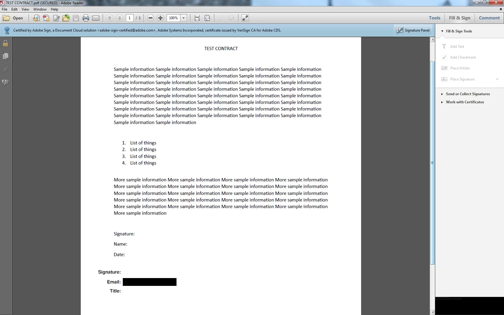 Now, if you would have added the 3 fields (signature, name and date), Adobe Sign would not have added the Signature block (along with title field) to your agreement. But since you said that you did add the 3 fields, for some reason Adobe Sign can't recognize those fields and hence this block.