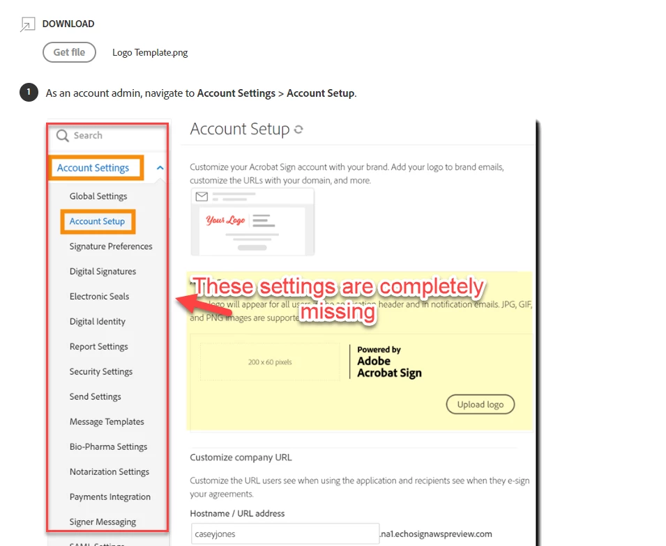 Can't change logo according to guideline for Adobe Acrobat and "Adobe Enterprise Sign Solution