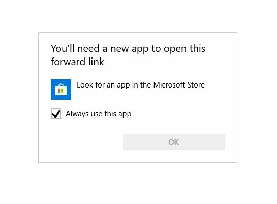 My user clicks a link in an email from a trusted employee, asking for a signature. The link in Outlook is clicked, up pops the default browser Edge. The user logs in using Adobe ID. Edge then presents a dialog box saying he needs a new app??? But it has worked in the past for this user, and other users on different PCs. Chrome/Firefox are OK. Screenshot attached. It has worked before. I have cleared caches, makes no difference. Any ideas anyone? Thanks.