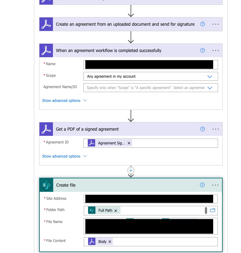 Somehow I am not able to send signed documents to sharepoint folder via Power Automate. I have checked the standard power automate templates or the solutions given on the power automate forum.